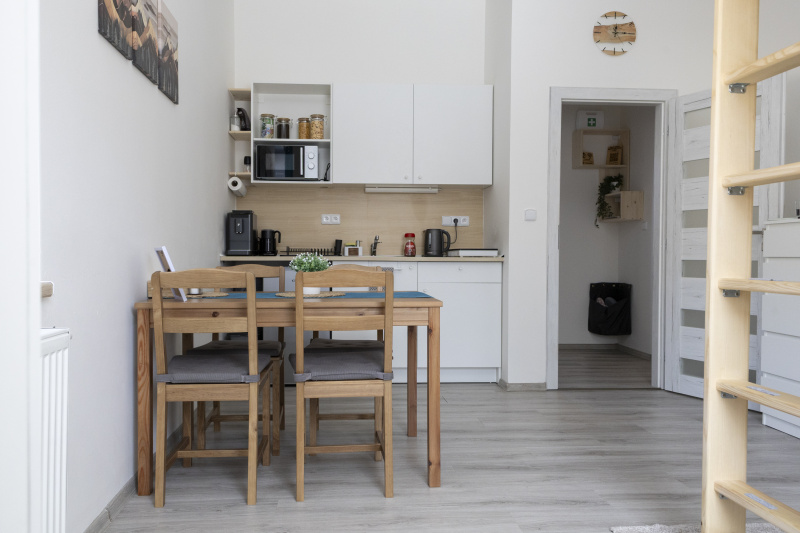 Součástí apartmánu je plně vybavený kuchyňský kout, kde si můžete pohodlně připravit vlastní jídlo. V těsné blízkosti najdete také restaurace, kavárny i obchod Tesco.