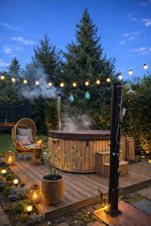 Toužíte po dokonalém odpočinku v soukromí? Vyrazte do Třeboně a užijte si pobyt v luxusním zahradním bungalovu, který je součástí Vily Evio. Čeká vás stylové ubytování o rozloze 60 m², prostorná terasa, vlastní zahrada i privátní vířivka – ideální kombinace pro romantický wellness pobyt ve dvou i pohodovou rodinnou dovolenou.