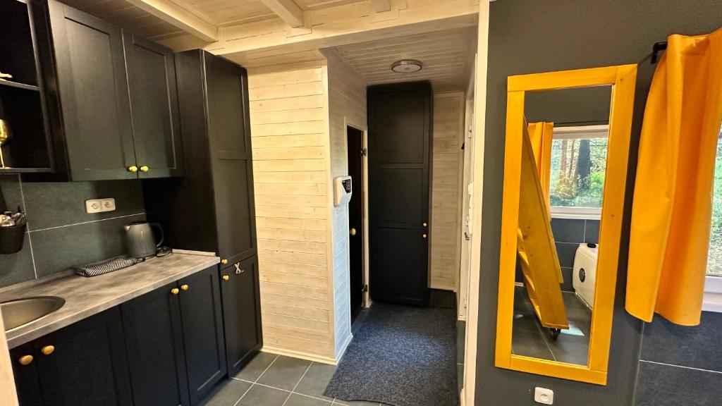 Kuchyňský kout je vybavený vařičem, rychlovarnou konvicí a ledničkou, takže si můžete připravit drobné občerstvení nebo si vychutnat pohodové ráno s kávou.
